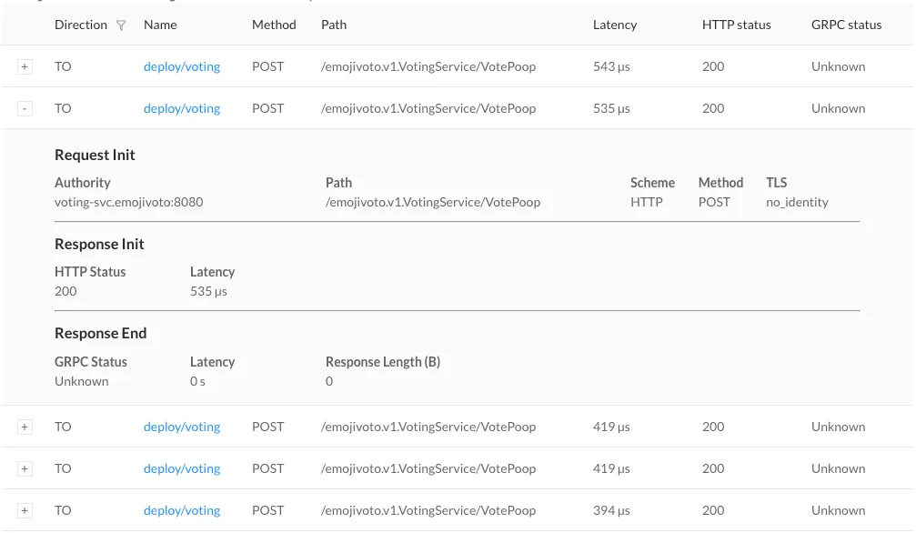 Note: Linkerd is aware of gRPC's response classification without any other configuration.